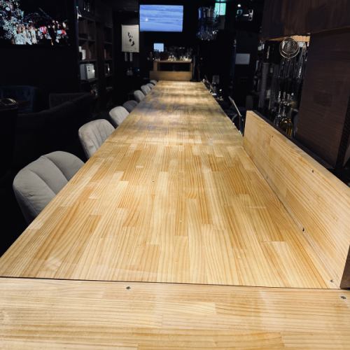 【温もりのあるカウンター席】少人数でも気軽にご利用いただけるカウンター席をご用意しております。目の前にはお酒の棚が広がり、臨場感もお楽しみいただける特等席です!気さくな店主が皆様のご来店をお待ちしております◎